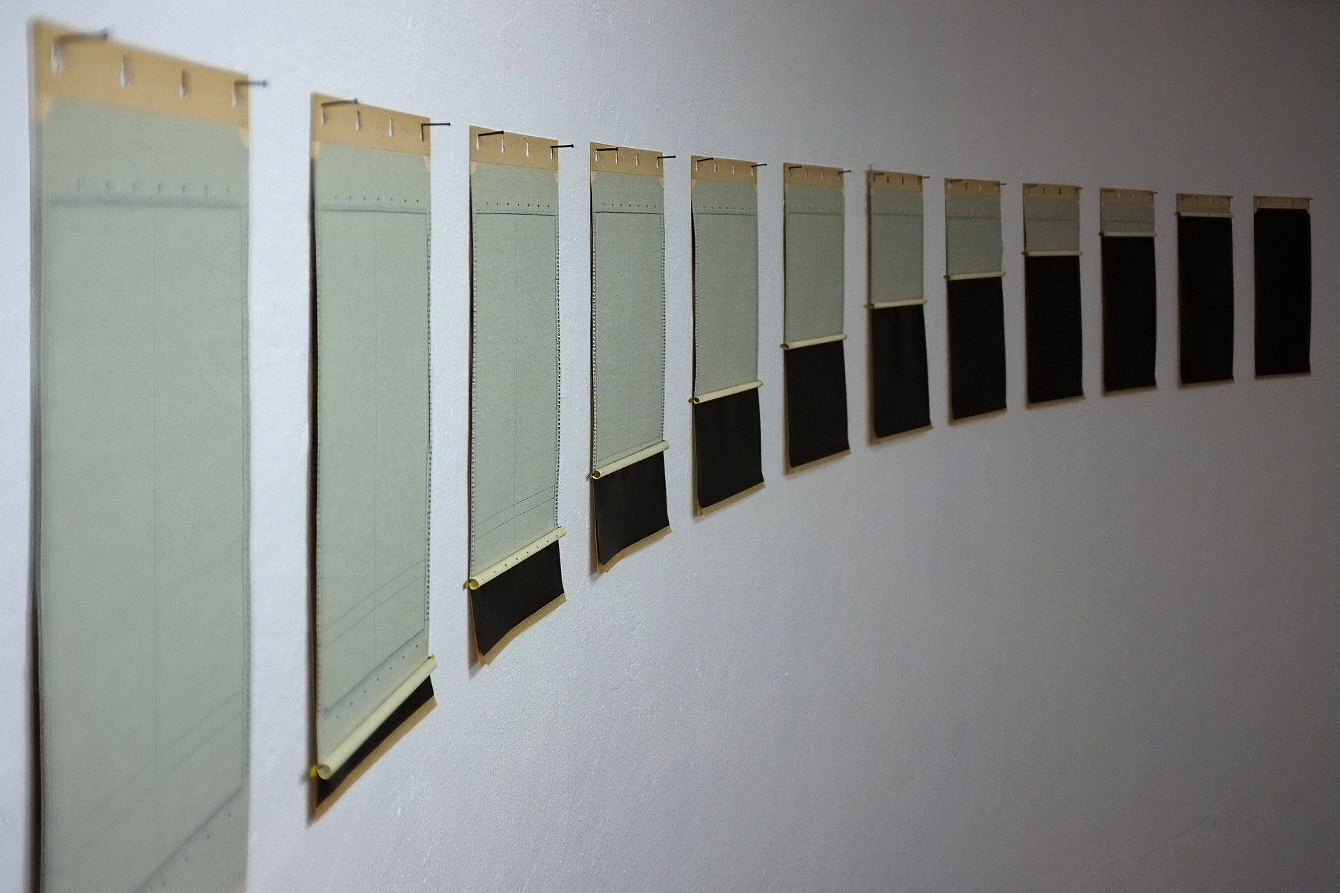 Crescendo - Papel Hectográfico c/ chapas de arquivo - 23,5 x 415,5 cm / 23,5 x 49 cm/cada - 2016
