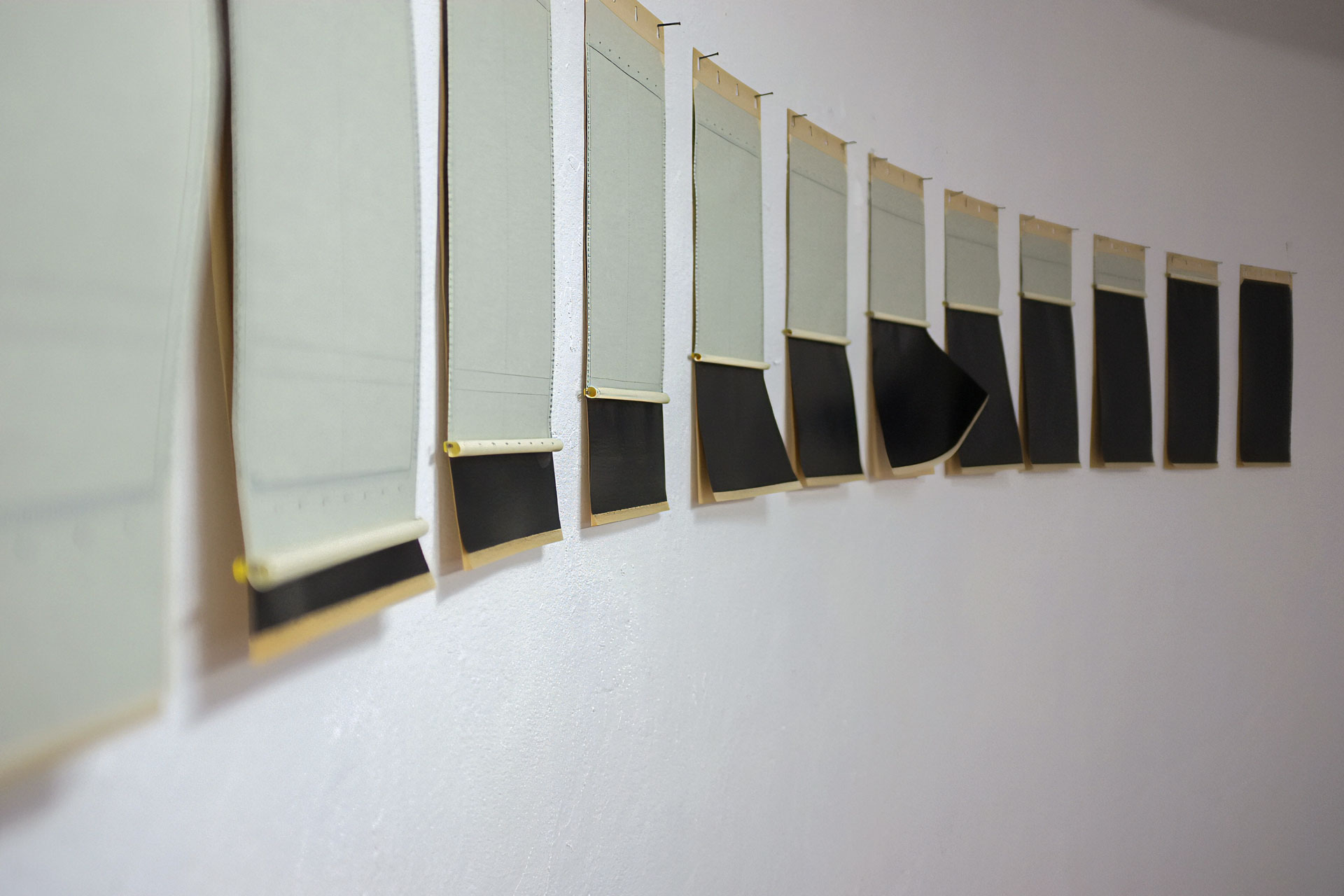 Crescendo - Papel Hectográfico c/ chapas de arquivo - 23,5 x 415,5 cm / 23,5 x 49 cm/cada - 2016