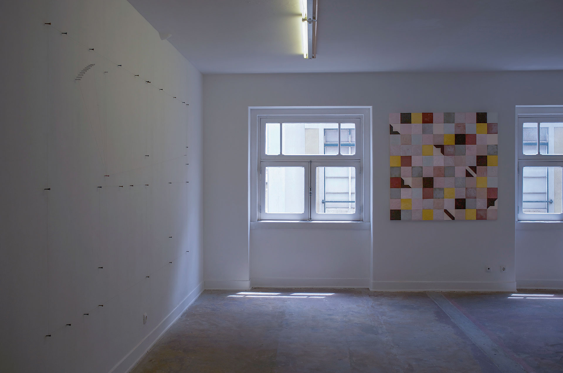 Desenho Geométrico - Pinos de golfe e linha de cobre - 165 x 340 cm - 2014